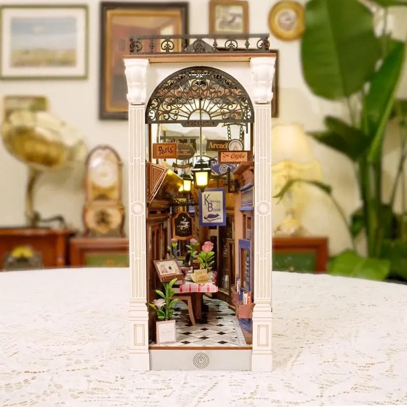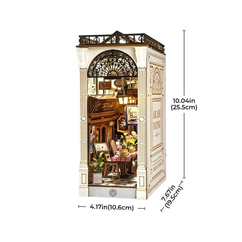 Discover the magic of a quiet evening for two with the Dating Alley DIY Book Nook Kit. This romantic miniature diorama brings to life a quaint, hidden alleyway where a charming café sits nestled between elegant storefronts. Designed to fit perfectly on your bookshelf, this kit transforms your library into an intimate urban escape, sparkling with the promise of a perfect date.