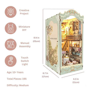 Escape the ordinary and enter a world of timeless sophistication with the Fairy Cottage DIY Book Nook Kit. This exquisitely detailed miniature diorama captures the essence of a romantic hidden retreat, where art and nature blend seamlessly. Tucked away on your bookshelf, this kit transforms your library into a serene art palace, filled with vintage-inspired furniture and lush, blooming flowers.