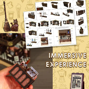Designed for those who love a cozy fantasy aesthetic, this kit offers a rewarding and mindful crafting experience. As you assemble the rustic wooden counter and arrange the whimsical décor, you aren't just building a model—you're creating a tiny sanctuary for your bookshelf. Once completed, the integrated LED lighting casts a soft, inviting glow across the shop floor, transforming your library into a captivating doorway to a witch’s favorite morning haunt.